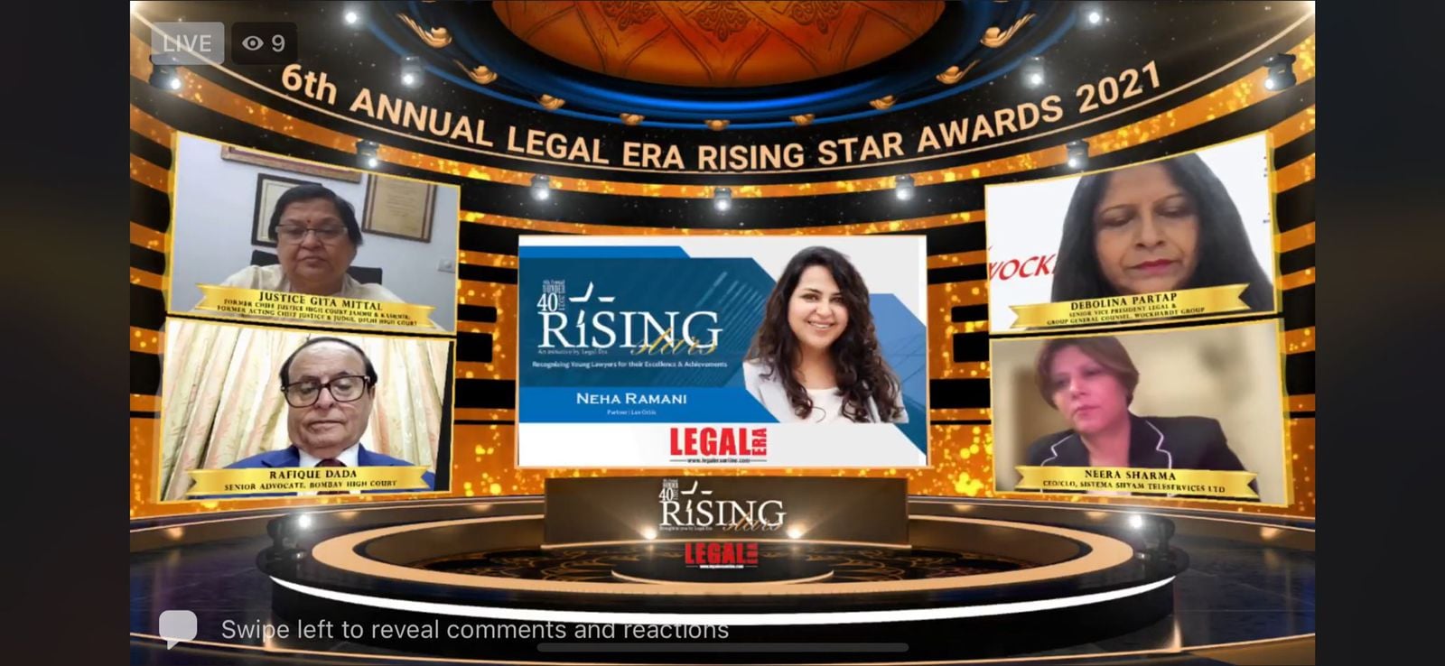We are pleased to share that our young professionals Neha Ramani, Partner, and Dr. Shivani Shrivastava, Associate Partner, from the Mumbai and Bengaluru offices, respectively, were recognised at the 6th Annual 40 Under 40 Rising Star Awards 2021 by Legal Era – Legal Media Group.